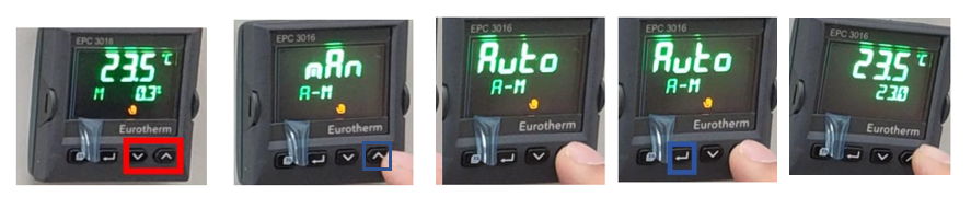 如果不是,按住上下两键 3 秒,出现 Man-Auto 选择界面,按上选择 Auto,然后按回车符号进入 Auto 模式。