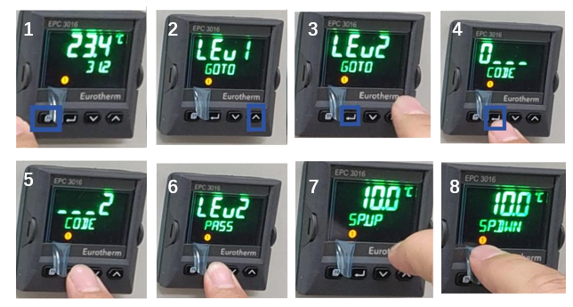 通过上下两键设置目标温度进行升温或降温(长按时,刚开始速度慢,后续会变快)。