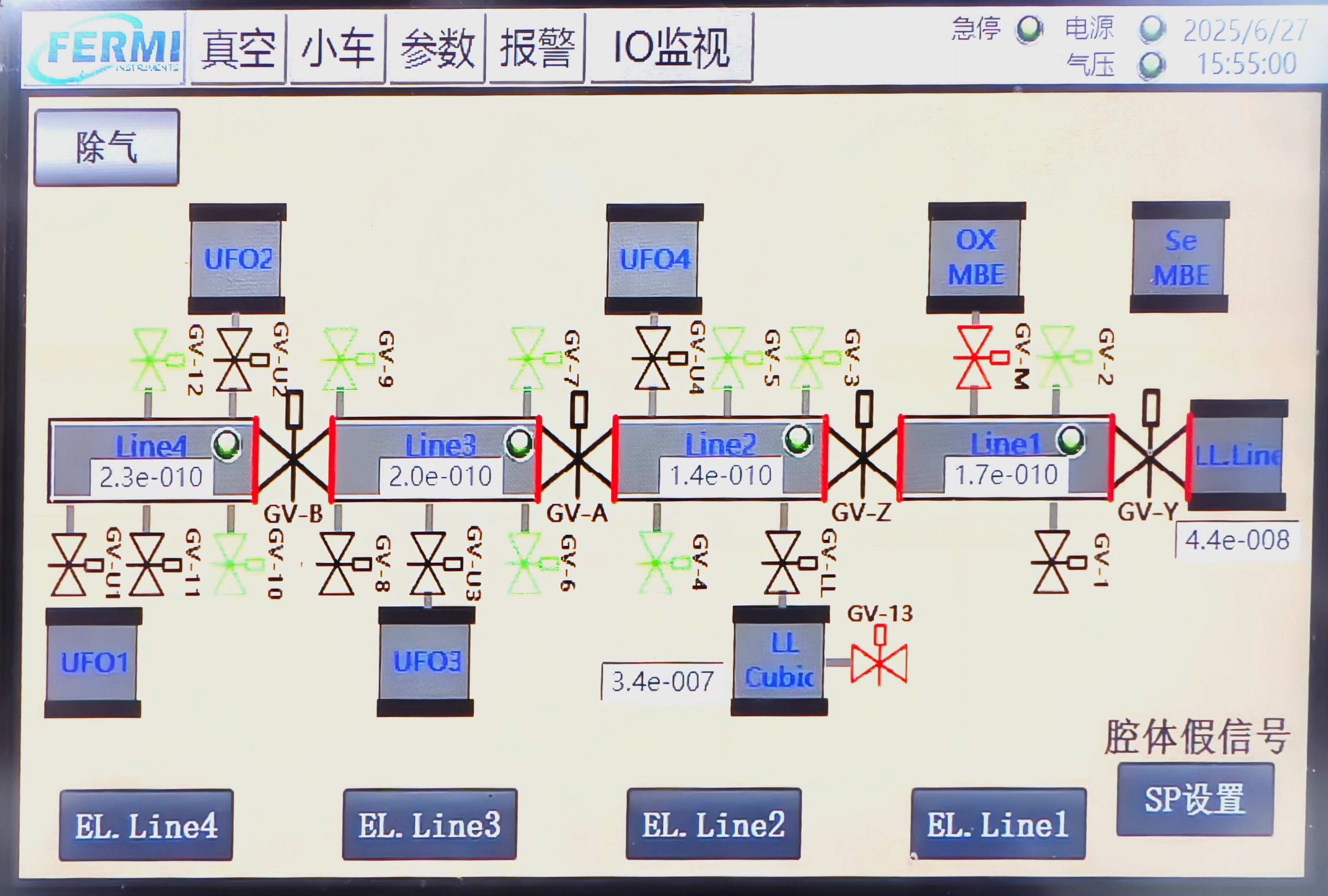 其他腔体的真空读数没有集成在直线段系统上,首先确认要打开的闸板阀两边腔体真空满足开阀条件。以UFO1和Line4之间的闸板阀为例
