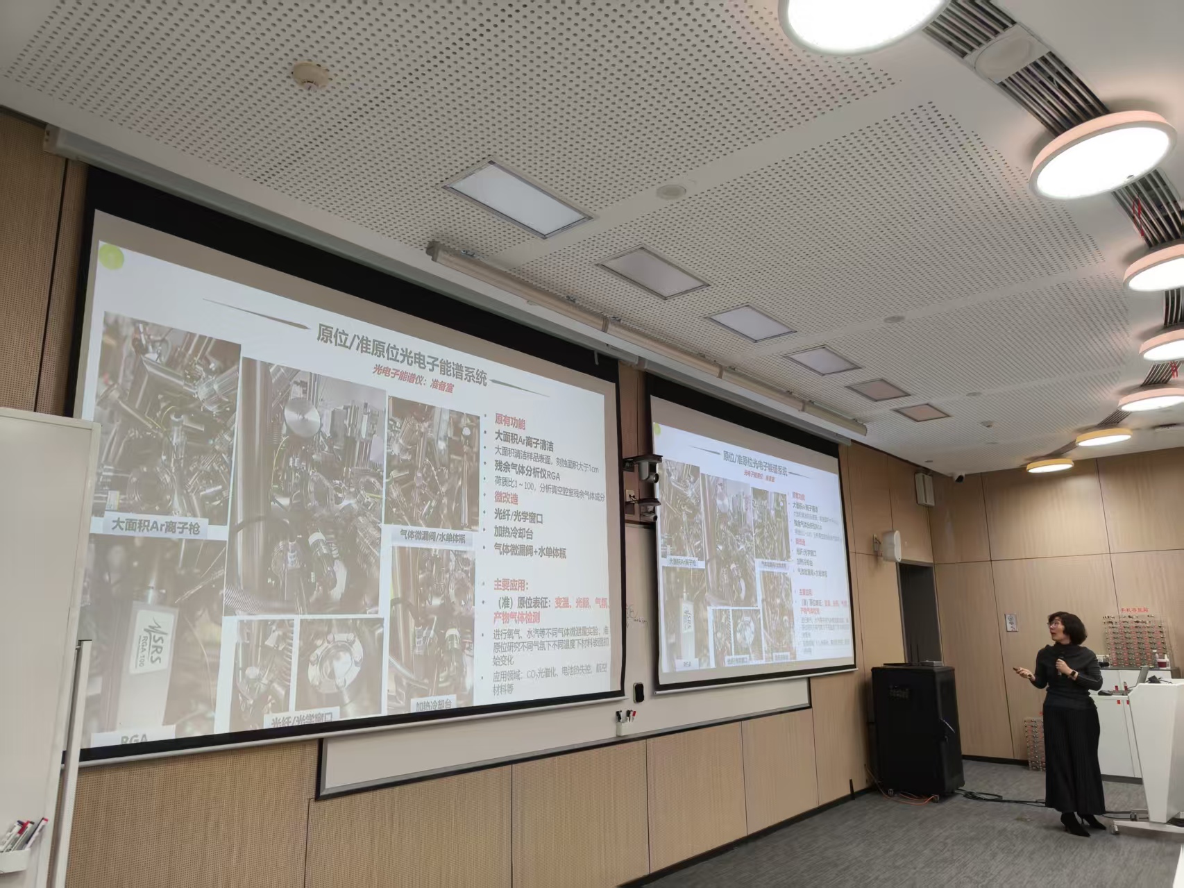 讲座纪实:谢方艳老师以其深厚的专业知识和丰富的实践经验,系统阐述了原位/准原位光电子能谱技术的实现策略与应用进展。传统的光电子能谱分析通常是在超高真空环境下对“静态”样品进行表征,难以反映材料在真实反应过程中的动态变化。而谢老师通过设计与能谱仪对接的真空互联系统,并集成光纤、加热/冷却装置及特殊样品台(如原位电池台),实现了在样品制备、预处理乃至发生化学反应的过程中,对其表面化学成分、电子结构进行“原位”或“准原位”的观测。