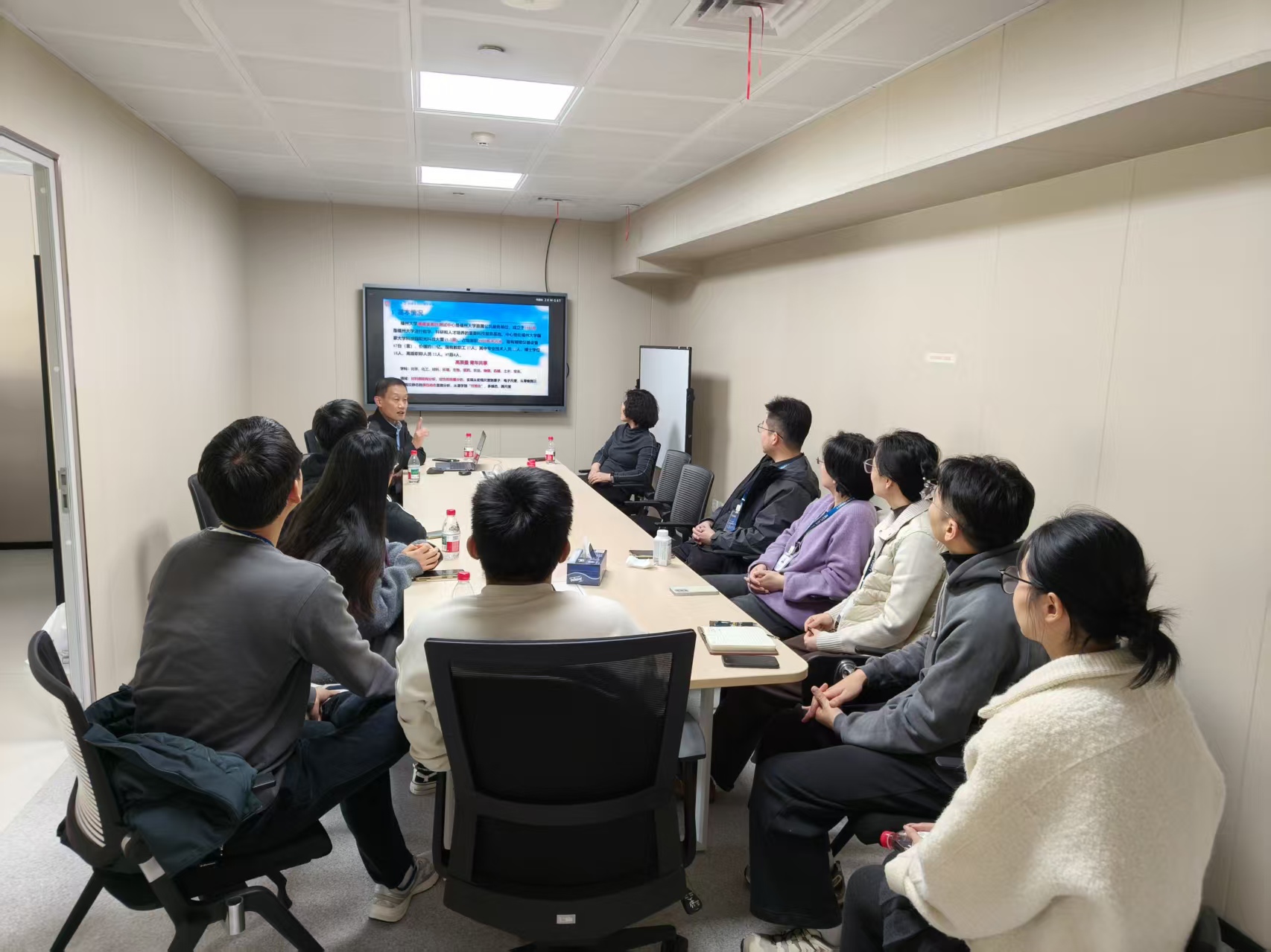 会后研讨:会后,平台主任周桃飞博士带领陈教授、谢老师参观并介绍了物质平台目前的建设成果,随后又与平台工作人员齐聚E10-182研讨室。陈教授以“完善系统,融创赋能,新质发展——福州大学福建省高校测试中心建设思考 ”为题,系统介绍了中心近年来的建设成效:通过贴息贷款投入1.04亿元更新TEM、SEM、XPS等高端仪器,显著提升微观检测与化学分析能力;同时通过管理系统升级,实现业财对接、仪器预约与数据存储的精准化管理,有效支撑学校科研创新与地方服务,同时也介绍了福州大学福建省高校测试中心数十年来的发展历程,分享了平台建设的宝贵经验。本次研讨为我校科研平台优化管理、提升服务效能提供了宝贵经验,助力高水平科研支撑体系建设。